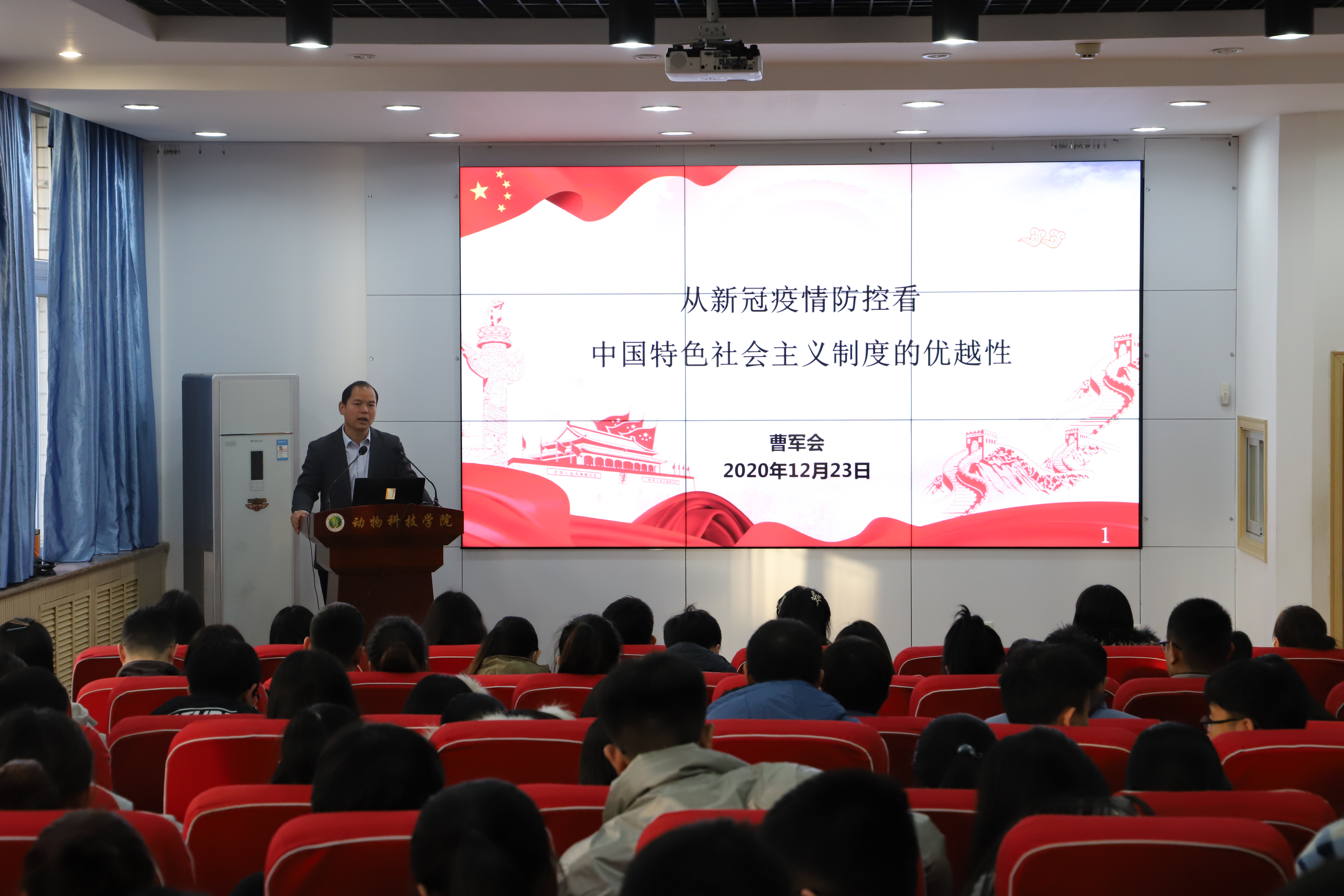 新冠肺炎疫情是新中国成立以来发生的传播速度最快、感染范围最广、防控难度最大的一次重大突发公共卫生事件,对中国是一次危机,也是一次大考。临近年终、临近期末,为切实增强广大学生对新冠肺炎疫情的认识,更好配合新阶段的疫情防控,12月23日下午,学院党委书记曹军会为全体党员骨干、团学干部上了一堂题为“从新冠疫情防控看中国特色社会主义制度的优越性”的党课。