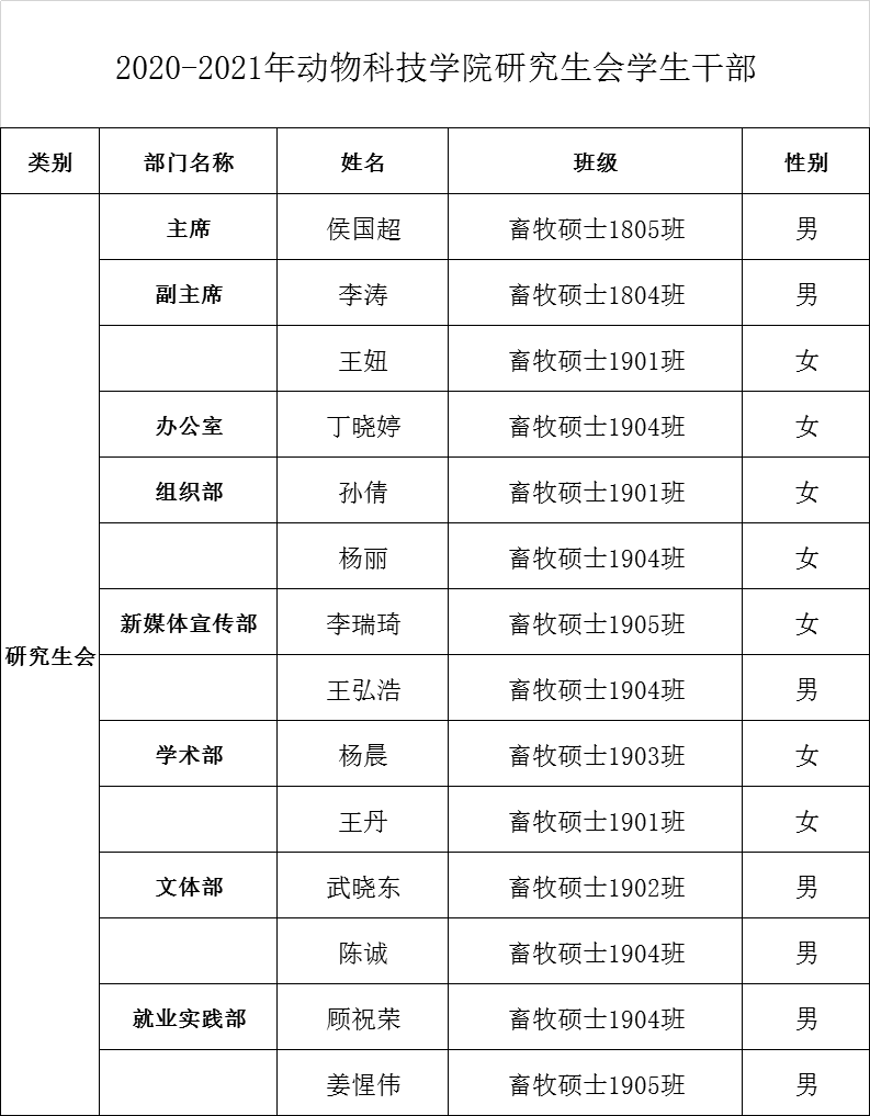 按照工作安排,经学生个人申请、学院研究生会学生干部换届领导小组进行资格审查,经2020年8月24日“百家乐策略 2020-2021学年研究生会学生干部换届选举大会”选举,建议由下列人员作为百家乐策略 2020-2021学年研究生会学生干部,现公示如下:
