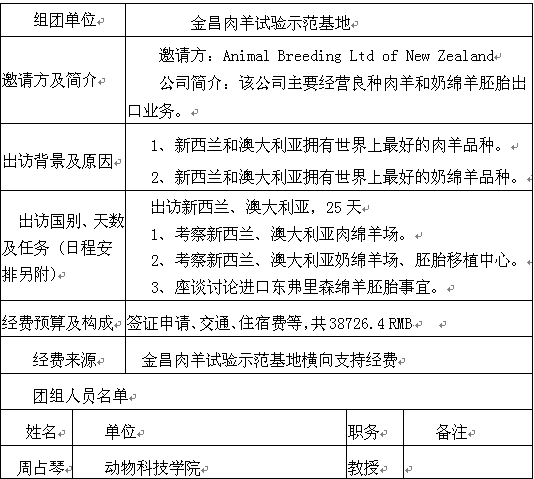 现将周占琴教授因公出国情况予以公示:
