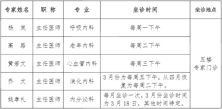 为了满足大家的就医需求,从3 月 4 日起,交大一附院专家来院坐时间诊恢复正常。坐诊时间安排如下: