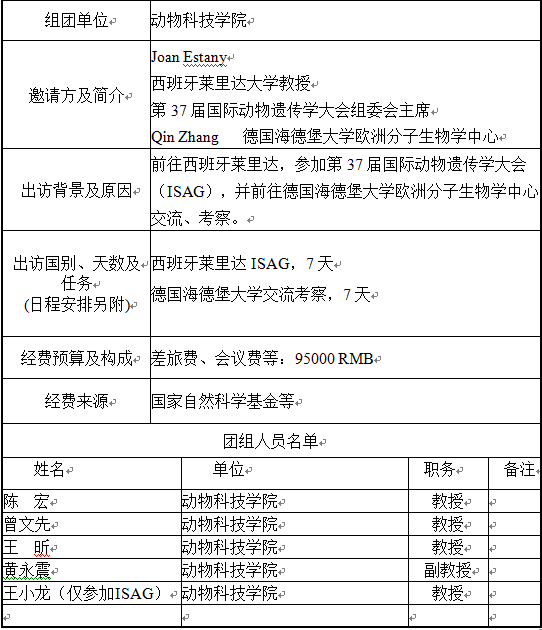 现将陈宏教授等因公出国予以公示,公示期自2019年4月28日至2019年5月5日,如有举报意见,请及时以书面或以口头形式向学院党政综合办公室110室反映,电话87092937。(公示内容见下表)