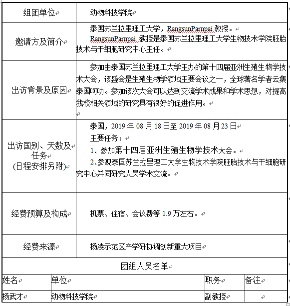 现将杨武才副教授因公出国予以公示,公示期自2019年7月4日至2019年7月8日。如有举报意见,请以书面或口头形式向学院党政综合室反映,电话87092937。(公示内容见下表)