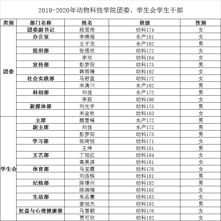 按照学校工作安排,经学生个人申请、学院团委、学生会、研究生会学生干部换届领导小组进行资格审查,提交2019年7月4日“2019-2020学年百家乐策略 团委学生会学生干部换届大会”选举,建议由下列人员分别作为2019-2020学年百家乐策略 团委、学生会、研究生会学生干部,现公示如下: