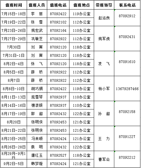 百家乐策略 2019年暑期值班安排表