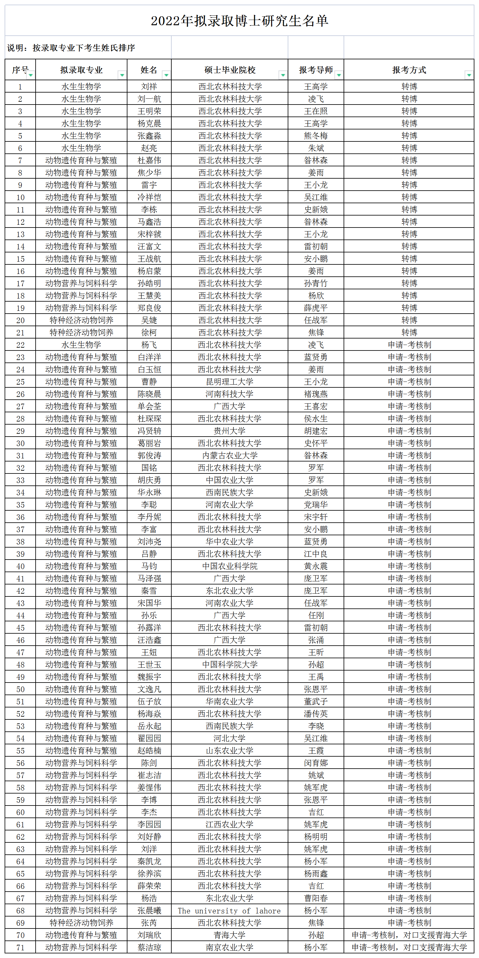 根据2022年学校相关文件要求,由个人申请、导师和专家组考核、学院招生工作领导小组审核,现将2022年拟录取博士研究生名单予以公示(见附件)。公示期5月17日至5月19日,公示期间,如对拟录取结果有异议,请以书面形式向学院研究生招生监督小组反映,联系电话:87092120。