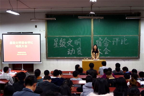 为充分发挥学生宿舍在教育管理和学生素质养成上的基础阵地作用,促进学院学生良好习惯的养成,增强宿舍文明和自律意识,全面提高学生素质,促进学生健康成长,10月10日下午,学院于四号楼楼4129教室举办了“星级文明宿舍评比动员大会”。学院全体专兼职辅导员参加了本次会议。