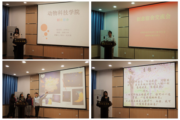 宿舍是大学生们共同营造的家,为给更多新生展示创意宿舍的机会,学院特举办创意宿舍答辩会。学生代表用幻灯片展示着他们亲手打造的创意宿舍。各个宿舍风格不同,各有所长。2#420以“陌上花开”为主题,砖块背景尽显园圃魅力,温暖阳光的向日葵布满床墙,多彩灵动的蝴蝶快乐飞舞,宁静朴素的田园气息感染着在场的每个人。2#402则被“红星闪闪”照亮,积极明亮的红星装饰让人耳目一新;2#308则用手工的千纸鹤打造童年的回忆,可爱女生们的柔软内心感点亮了现场…同学们发挥自己的聪明才智打扮出与众不同的宿舍空间,丰富主题收获评委们的掌声与称赞。