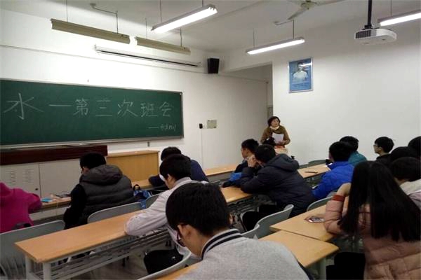 班主任周继术老师向同学们了解近期学习、生活等各方面的情况,为强调班级纪律,周老师向同学们详细解说《大学生手册》中对于学习、纪律方面的内容,提醒大家做好自我规划、认真遵守校纪校规及班级公约。周老师说:“班级公约对优秀的同学来说永远不是约束,而是督促大家做的更好,希望大家正确对待公约,充实度过大学生活”。助理班主任程丹雨则结合自己自身感悟,督促同学们认真听课,抓紧晚自习及课余时间好好学习。最后,班长曹峥和团支书肖宇就近期班团工作开展情况做了认真总结。