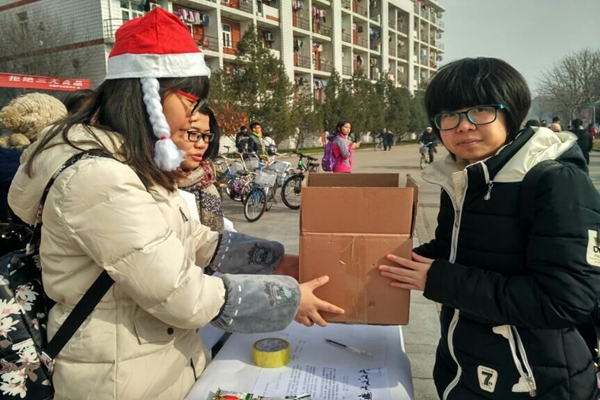 为了丰富同学们的课余生活,为同学们提供一个增进彼此感情的良好平台,帮助大家度过一个愉快而又有意义的圣诞节,12月24日中午,百家乐策略 联合人文学院共同于西超雕塑前举办了圣诞送温暖活动。