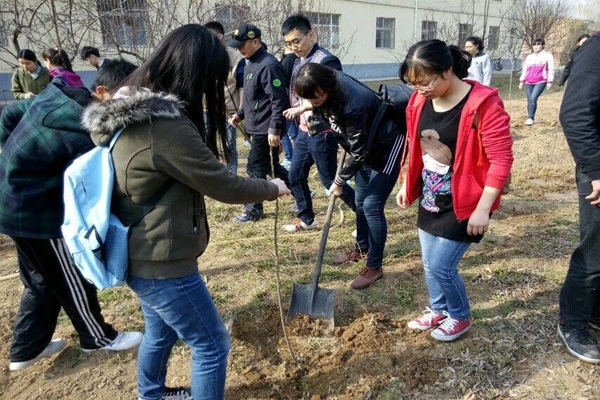 3月12日,村助已与寨东村村主任及中心小学校长见面,并到小学进行实地考察,确定所需树苗总数,当天下午村助就前往苗木市场购买了40棵樱花树。13日清晨,寨东村村助马锦荣、董朝霞及半个城村村助孟竞尧携志愿者们前往寨东中心小学进行雷锋月的植树节活动。首先,与中心小学校长及村主任进行交谈,葛校长热情的提供了植树所需的各种工具,并做好地区规划,有距离有选择的进行种植,然后,校长及村主任与村助及志愿者们按照规划进行植树,在校门口两边的的小花园、体育场周边及教学楼后的小菜园进行了樱花树的栽植,从挖坑、放树到填土、踩土再到浇水,认真完成每一个步骤,最后,在一次又一次的重复中,40棵樱花树骄傲的站在春天的阳光下。活动结束后,大家一起合影留念。小学生的朝气就似樱花树的绚烂,让我们一起伴随着“樱花树”的成长。