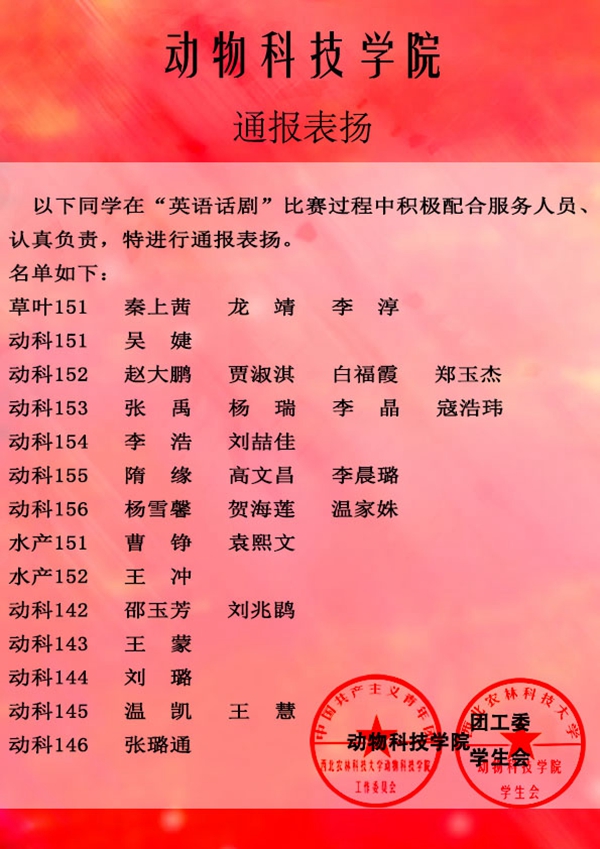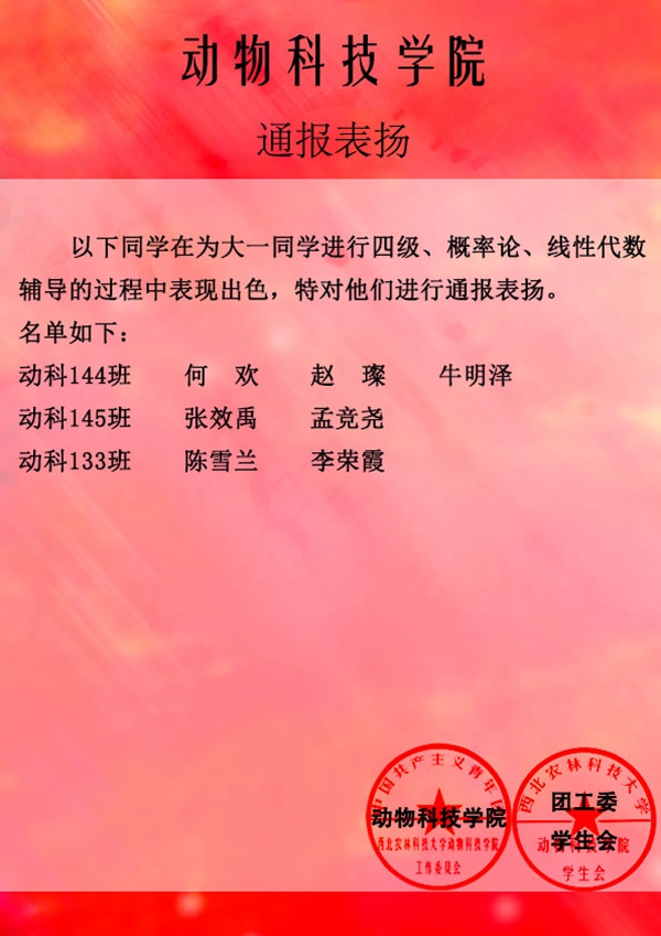 【团工委 学生会】通报表扬