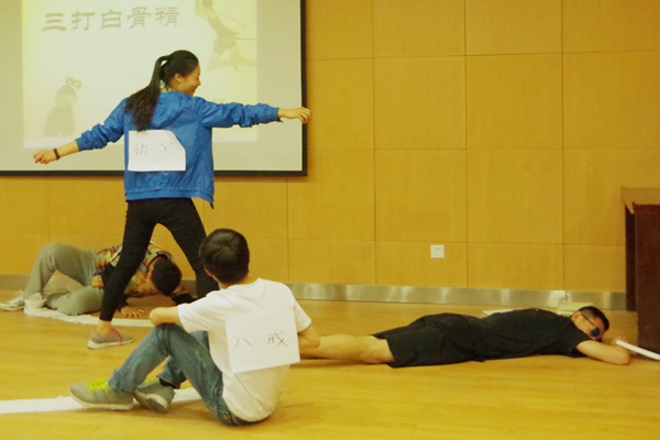 话剧队同学在百家乐策略 英语话剧大赛中表演《新编三打白骨精》