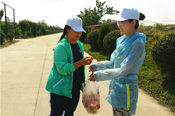 队员品尝合作社桃子