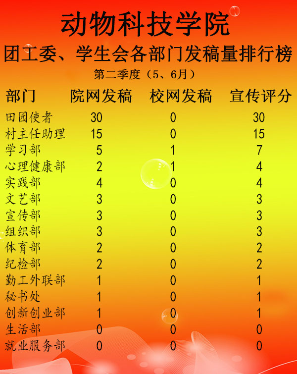 团工委、学生会发稿量排行榜(5-6月)