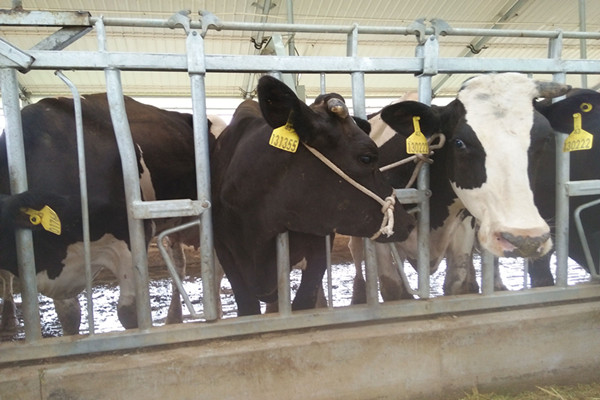 活动伊始,队员们穿戴规定的工作服及防护工具,进行全身消毒后方可进入牛室,队员们跟随兽医站的工作人员检查各个牛棚中奶牛的健康状况。一切就绪后,队员们在工作人员的引导下进入兽医站,兽医站内主要存放一些药品和手术器械等各种工具。负责人付师傅表示,兽医站最主要的工作还是医治患病的奶牛及疫病的防治。当天医护人员准备给部分患病奶牛输液,队员们主动要求协助医护人员,在专业老师的指导下初步尝试进行药物的配置,随后跟随老师进入牛室对牛进行颈静脉注射。牧场的栏杆有设计巧妙的结构用以固定住牛身,为牛的注射工作提供了便利。