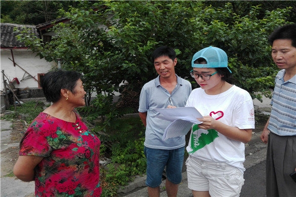 队员在村头采访养殖户