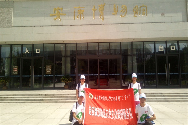 安康古称“金州”,是东方圣母女娲的故乡,素有“天然生物基因库”、“中药材之乡”、“中国硒谷”“中国民歌之乡”“中国茶乡”等美誉,具有极高的调研价值。活动期间,队员们首先一路寻访了许多当地老人,与其进行沟通交流,倾听其诉说安康的历史以及经历的故事。在交流过程中,队员们仔细记录,认真分析安康的传统文化。随后,队伍一行人来到安康市博物馆,参观其内陈列的文物珍藏,探寻其背后隐藏的历史文化。博物馆内部陈列展览由“天赋安康”、“脉源安康”、“筑梦安康”三大基本陈列和“安康三线建设历程展”及“法书名绘—馆藏精品书画展”两个专题展组成,队员们通过浏览欣赏,对安康历史有了更加深刻的了解。