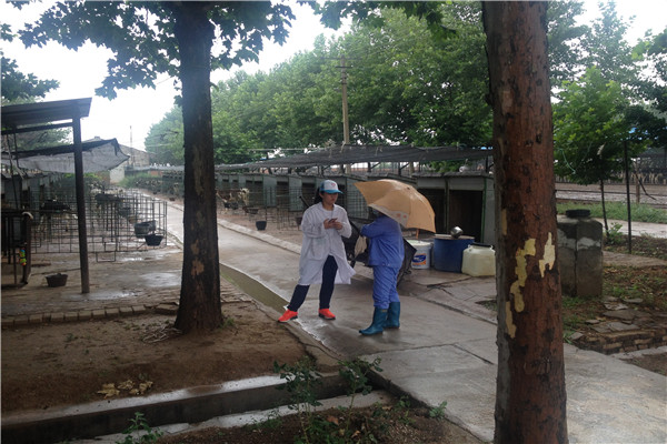 队员对犊牛饲养区工作人员交流心得