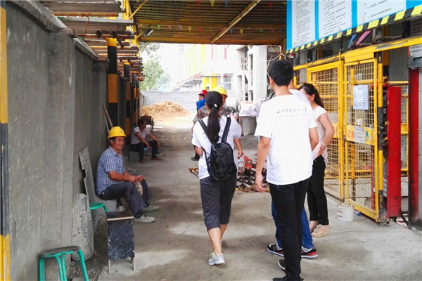 在公司调研完成之后,队员们来到一个正在施工的建筑工地进行慰问,用实际行动表达对他们为打造一个更美丽的城市所做的贡献的感谢之情,也表达了对他们辛苦工作的尊重。虽然建筑工人是一个不起眼的职业,但队员们在与工人们交流后,队员们对建筑工人有了很大的改观,发自内心的尊敬这些为美丽城市添砖加瓦的建筑工人。