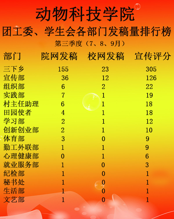 » 团工委、学生会各部门第三季度发稿量排行榜