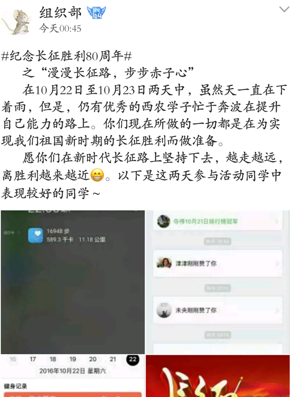 本次活动面向全体本科生展开,主要通过百家乐策略 组织部官方QQ与同学们互动,新颖的活动方式广受大家关注。线上活动名为“漫漫长征路,步步赤子心”,旨在鼓励同学们在周末走出宿舍,学习知识和技能,丰富自我。同学们积极走进图书馆,浏览网页,查阅相关历史材料,积极学习长征精神。另外,活动通过分享链接组织同学们观看并学习了习近平总书记在长征胜利80周年大会上的发言,并对学习精神进行归纳总结,表达自己的学习感悟,并纷纷表示会走好新的长征路,走好自己的长征路,为中国梦的实现助力。百家乐策略 李亦洲同学说:“此次活动形式比较新颖,不是教科书式的学习,而是自己参与其中,亲身去体验、反思,让我对长征精神有了更为实际的感触,收获满满的。”
