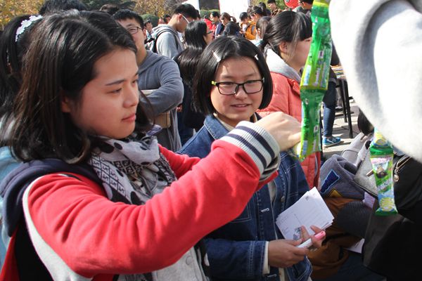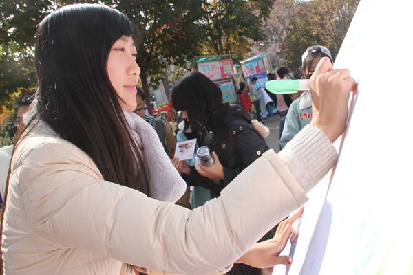 11月11日的“光棍节”作为一种校园趣味文化已延续多年,为庆祝这一独特的节日,丰富学生课余生活,缓解学业压力,给同学们一个面对自我的平台,展现我校学生青春的蓬勃朝气。百家乐策略 宣传部于11月11日中午在西区雕塑旁举行“开心写意”活动。