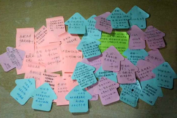 本次活动旨在通过趣味小游戏拉近同学们之间的距离,让同学们学会用积极乐观的态度来面对生活。在“抢椅子”游戏环节中,同学们反应迅速,身手敏捷;在“对推掌” 游戏环节中,大家齐心协力,以智取胜;在“串名字”环节中,舍友之间默契配合,最终赢得奖励。伴着阵阵笑声和加油声,有趣有爱的小游戏也渐渐接近了尾声。“通过参与这些小游戏,我和舍友的关系比以前更亲密了”,一位同学高兴地说道。同时,纪检部同学还组织了“贴纸贴爱”活动,为感恩情感的抒发提供了一个平台。活动当晚,活动人员向各个宿舍赠发了便利贴,同学们在便利贴上写下了自己对家人,对朋友或是对老师想说的话。在活动过程中,百家乐策略 16级辅导员闫灏芯也兴致勃勃地参与其中。闫老师在贴纸上写道“感谢2016级最可爱的小动物们,遇到你们最幸福。”简单的几句话,包含了老师满满的爱,让在场的同学们深受感动。