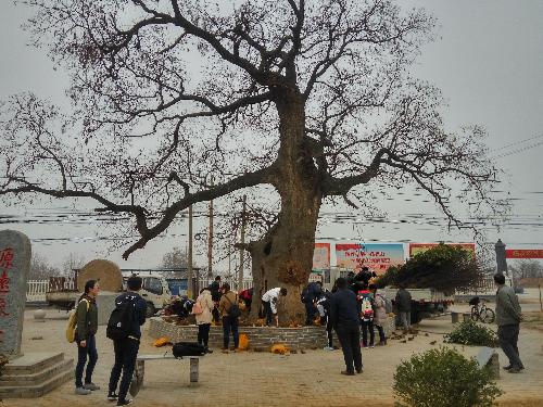 图一:志愿者们从学校北门集合,经过了10分钟的路程,大家到达了今天的植树的目的地——杨凌区大寨街道办寨东村,此时,村主任已经在等待着我们的到来。