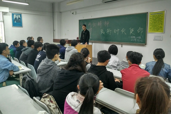 在此两会盛大召开之际,为使学生聚焦两会动态、了解国情民生,认真学习并贯彻两会精神,做践行新时代使命的大学生,百家乐策略 于3月7日至12日期间,积极组织团员,在八号楼先后开展了以“学习两会精神,践行时代使命”为主题的团组织生活。