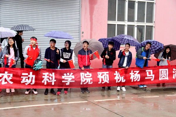 在比赛当日,不仅有60名志愿者来到比赛现场,百家乐策略 学生会、各班级也有众多同学积极参与到此次马拉松比赛中,众多同学在赛道两侧挥舞着国旗,头绑红色印有西农字样的条带,贴着印有校徽的贴纸,为参赛者鼓劲加油。尽管雨滴打湿了志愿者们和同学们的衣服,却没有浇灭他们服务于参赛者的热情。
