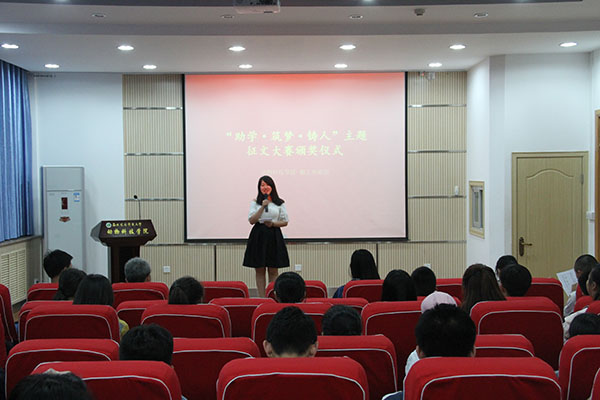 勤工外联部部长贺海莲为优秀奖获得者颁奖