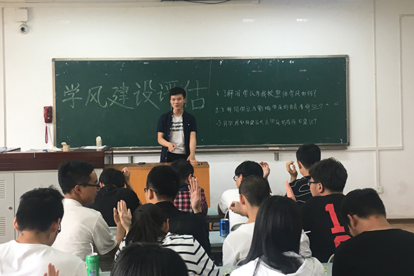 各班积极组织班会、座谈会、评议会等形式多样的活动,围绕同学们对我校整体学风的感受、认为影响学风的因素以及对如何建设优良学风的措施与建议三个问题进行探讨:草业1601班采用有奖竞猜的形式,同学们积极发言、踊跃答题,班会现场气氛热烈;草业1602班则邀请班主任,采取自由讨论的方式,各抒己见,提出了如何建设优良学风的宝贵建议,班主任针对问题并给予相应建议。各班同学不仅对以上三个问题进行深入讨论,还一起探讨了班风建设中存在的具体问题,活动结束后,大家纷纷意识到需要从自身做起、从实际出发,共同建立优良好学风。