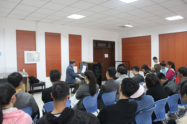 “音乐,是最美好的教育方式”,陆雨安先生用美妙的钢琴与优美的歌声交流文化,传递力量,他与在场师生愉快交流,带来了充满爱尔兰风情的民族歌曲,为同学们注入了一剂强心针,让心中正在萌发的音乐之芽茁壮成长。”音乐会特邀嘉宾老师们也纷纷献唱,现场氛围愉快和谐。