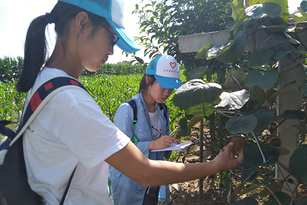 活动开始前,队员们根据事先搜索的信息了解到,猕猴桃作为周至县的重要经济作物之一,收益可观,然而其产业对当地的脱贫致富没有起到相当的推动作用。对此,队员们经过详细的商议,决定要直切要害,前往农户家中,多层次、全方位地了解、掌握相关资料。同学们的登门拜访受到了当地农户的热情欢迎,村民们对队员的问题知无不答,分享自己的经验和想法。调研过程中,农户邀请队员们走进自己的田地,近距离观察猕猴桃的品种长势,并为大家做细致讲解,队员们对猕猴桃种植环境、病灾症状有了更为深入的了解。