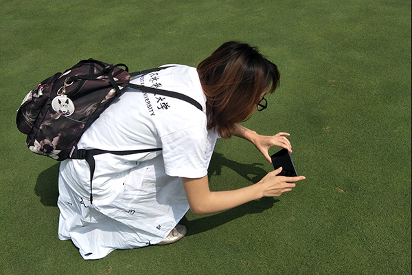 通过昨日的调查经验,队员们对本次活动做了细致的策划。活动开始后,在王博经理的带领下,队员们依次对多处的草种进行了实地调研,同时他向大家教授了球场草坪的相关养护和管理方法。在谈到草坪的修剪、灌溉、施肥及病虫害防治等方面相关内容时,他列出多点要求:草坪需要每天进行修剪;灌溉要依据土壤含水量及水分蒸发量及时调整;管理人员需认真观察并判断病害的种类,及时喷药进行防治等。期间,王经理表示:“希望同学们能够开阔眼界多学习与专业相关的知识,在认真学习课本知识的同时注意结合草坪管理中的实际情况。”对于接触到的专业知识和相关技能,队员们仔细聆听,认真笔记,学习氛围高涨。
