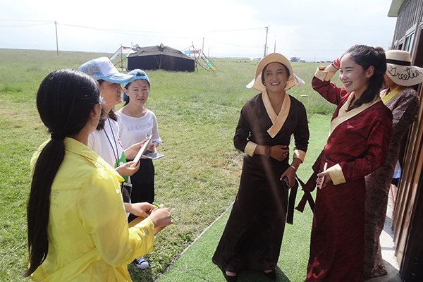 祁连县是青海省主要的畜产品基地,海拔2700-5000米,气候寒冷,队员们出发前在保暖方面做了充足的准备。祁连山生态牧场就在有“中国最美草原”美誉的祁连山下,是纯天然草场放牧的高原特色最集中的区域。初进祁连山生态牧场,队员们看到的是由规模化的帐篷搭建组成的接待区,帐篷内设有藏式餐桌及用具,服务人员皆为当地牧民,接待区是一个餐饮服务的部分。草场区与餐饮服务区镶嵌结合分为夏季草场和冬季草场,在餐饮服务区后还设立着住宿区,与当地居民沟通后了解到,祁连山生态牧场已经不是单一的为畜牧牧场,而结合了餐饮,住宿,旅游等第三产业的开发。