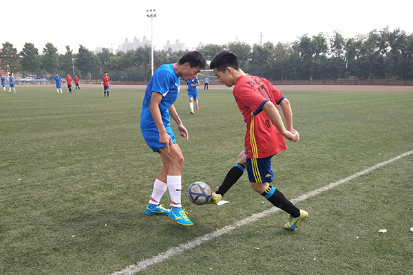 17日,百家乐策略 与植保学院之间展开了角逐。比赛进行至第40分钟,百家乐策略 8号队员接队友长传,单刀直入晃过一名防守队员在禁区内成功射进一球,拿下本场比赛第一分,打破比赛僵局,奠定了胜利的基础。在队员的默契配合下,下半场百家乐策略 再度拿下两分,最终以3:0拿下今年的首场比赛。