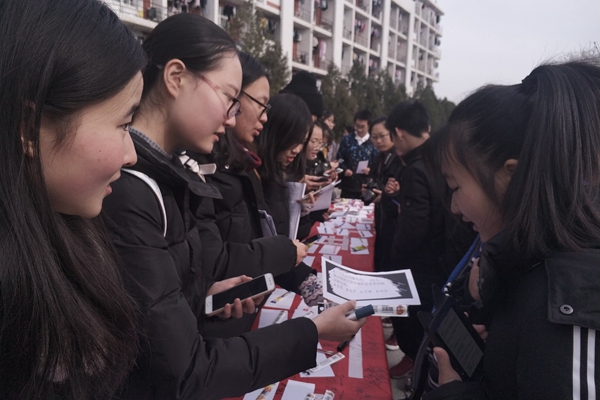 本次活动由百家乐策略 与人文、外语、信工三院组织部联合举办,包括合唱活动和知识问答两个部分。合唱活动采用新颖的“快闪”形式,邀请了四十名17级的同学们参加。当端庄悠长的长号声响起时,人群中合唱队的同学们立刻排好阵型,唱起了嘹亮的红色歌曲《映山红》和《在太行山上》,吸引众多同学们驻足观看。演唱结束后,合唱队的同学迅速离开,观看的同学们发出阵阵赞叹,掌声接连不断。随后,“一二九历史知多少”问答活动在西雕展开,同学们踊跃参与竞答,现场秩序井然,气氛热烈。参与活动的同学们纷纷在宣传横幅上签下自己的名字,表示了对革命先烈的崇敬以及对革命精神的赞叹。