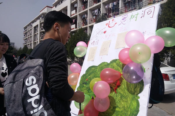 暖春时节是学生心理问题涌现的高发阶段。为了让同学们正视自己的问题和困惑,给学生搭建一个 “宣泄、表达、倾诉、慰藉”的平台,3月25日,百家乐策略 心理健康部在西区雕塑举行 了以“心愿树洞,宣泄压力”为主题的心理咨询活动。
