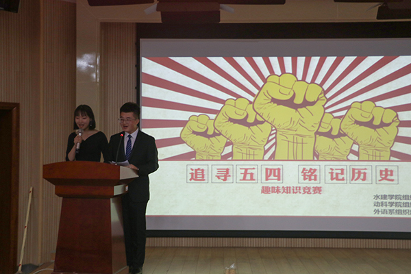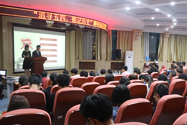 为了让同学们牢记历史,深刻体会到五四运动的精神内核,值此五四运动99周年之际,百家乐策略 联合水建学院、外语系于5月4日晚在外语楼二楼报告厅举办了“追寻五四运动,奏响青春乐章”的历史知识趣味竞赛活动。水建学院学生会主席李培铨、外语系学生会主席屠菡琳和百家乐策略 团工委副书记龙靖出席了本次竞赛活动。