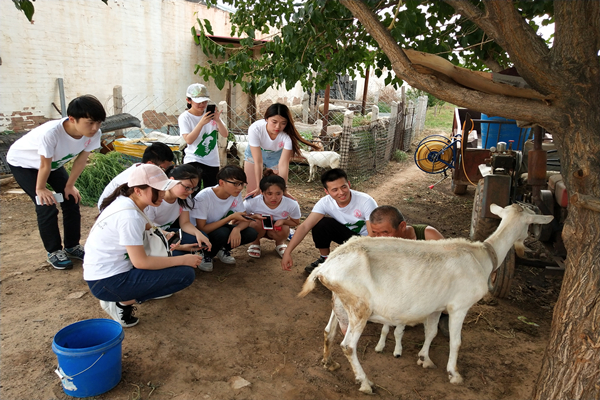 巴拉贡葡萄生态园的主人温岳先生是镇上一位普通农民,他不仅在自己的生态园里种植葡萄、李子,还圈养了许多山羊。据悉,这其中有绒山羊和波尔山羊,两个品种的山羊分别在两个羊圈中自由繁育,而哺乳期母羊则被单独拴在羊圈外的树上,队员们在走访过程中看到,温先生除了把羊羔抱到哺乳期母羊身边将羊羔喂饱,并没有对圈里的山羊进行其他的人工干涉。