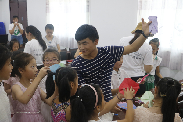 7月18日,百家乐策略 赴杨凌新集村支教服务队如往日一样,早早到达支教地点,为今日课程做准备。活动中,队员们给孩子们播放音乐剧开阔孩子们的视野,培养其艺术鉴赏能力,并在手工课上教孩子们折风车信封,锻炼他们的思维和动手能力。