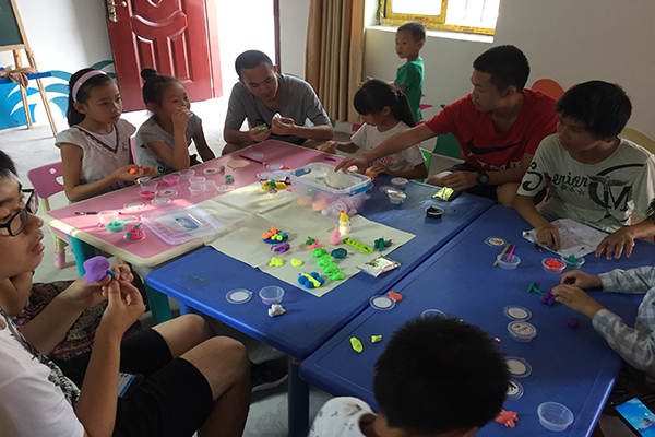 团队在活动中激发孩子兴趣,让孩子敢于实践同时也敢于展现自我的中心思想,期望给予孩子最好的、最贴切的教育关爱。童歌教唱活动中孩子们在团队和老师的带领下放声高歌,感受到了音乐带来的乐趣。合作捏软泥作图游戏中孩子们在团队成员的启发下发挥想象力,团结一心共同作出了两幅由五彩软泥组成的精彩图画。