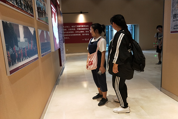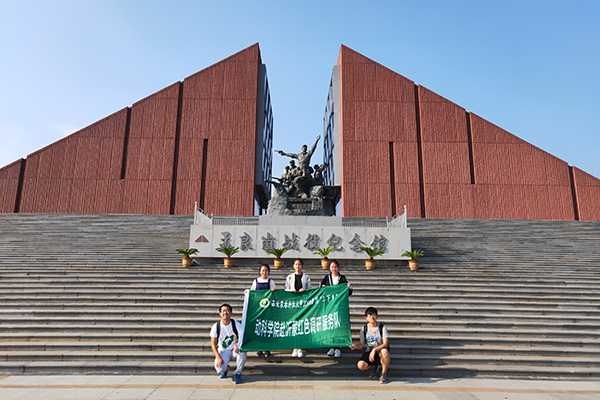 沿着几百米的林荫小道,调研队来到了纪念馆。纪念馆广场屹立着一座革命战士们在战场上奋勇杀敌的雕塑像。门厅、战役厅、支前厅、英烈厅及双拥厅,纪念馆里五个展厅共同吟诵着历史的诗篇。展厅中,一件件革命时期遗留物把那段可歌可泣的历史展现在队员眼前,一张张解放战争的真实照片映入脑海,一个个革命人物的历史事迹撼动人心。调研队成员安阳感叹到“今天的和平是靠无数的革命先辈们抛头颅洒热血,用生命换来的!珍惜和平是每个人应该做的,我们在享受和平的同时更应当铭记历史”。