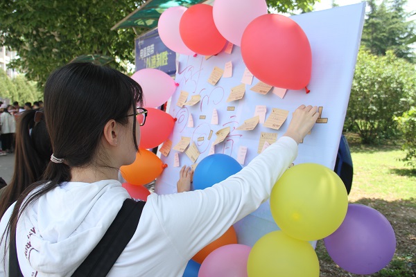 活动前夕,为了解同学们的心理状况,内心困惑,压力来源等,更有效地舒缓同学们的心理压力,心理健康部部委采于五月五日晚自习在八教为同学们分发便签,让同学们将自己的烦恼困惑写下来,并让想收到回复的同学留下联系方式。通过短信、QQ等方式对心理存在困惑的同学们进行认真诚挚的回复,借此帮助同学们清理“心灵毒素”,解决他们的烦恼,接纳“心灵给养”。活动当天,精美有趣的展板和部委们热情地讲解,将烦恼写在气球上并扎破的活动方式吸引了过往同学纷纷驻足,通过扎破写着自己烦恼的气球的方式来宣泄内心积蓄已久的情绪,然后送给自己一句治愈的话,赶走自己的心灵毒素。动科1806班伍静昀同学感慨:“最近训练和学习让我疲惫不堪,感谢心理健康部的这次活动,让我宣泄了自己的情绪。”