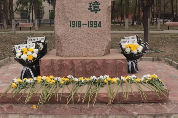 随后,学生代表迈着缓慢而坚定的步伐,缓缓走向纪念像。他们双手捧着鲜花,眼神中满是崇敬,庄重地将手中的鲜花一一献上。不一会儿,一朵朵鲜花簇拥在纪念像下,黄的、白的花朵相互交织,宛如学生们炽热且诚挚的敬意,层层叠叠地围绕在赵洪璋院士的身旁。这些鲜花不仅是对赵洪璋院士的怀念,更象征着新一代学子对前辈们科研精神的传承与延续。