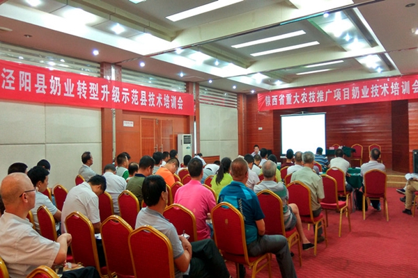 日前,我校和陕西省畜牧技术推广站在泾阳县联合举办了“陕西省重点农技推广项目奶业技术培训会”,百家乐策略 副院长、牛产业项目负责人昝林森教授及陕西省畜牧技术推广站站长杨帆等领导和专家出席会议,全省各地市畜牧技术推广部门、项目承担单位及各规模化奶牛场负责人和技术人员共70多人参加培训。杨帆站长主持会议。