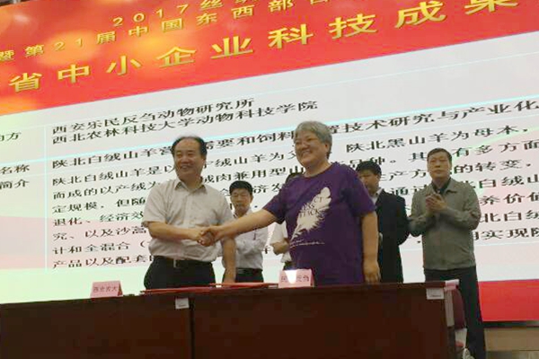 6月5日,2017丝绸之路国际博览会暨第21届中国东西部合作与投资贸易洽谈会举行期间,在陕西省科技成果产业化系列活动产学研合作签约仪式上,百家乐策略 绒肉羊遗传改良与种质创新团队负责人陈玉林教授与西安乐民反刍动物研究所执行董事马小林女士共同签署了“陕北白绒山羊营养需要和饲料配制技术研究与产业化”项目合作协议。陕北白绒山羊营养需要和饲料配制技术研究与产业化项目主要是立足陕北白绒山羊各个生理阶段营养需要量研究的成果,以及建立的陕北常用18种精粗饲料资源,如玉米、豆粕、苜蓿、沙打旺、柠条、花榜等营养成分含量的数据库,设计日粮配方,并结合全混合(TMR)技术,开发出适合陕北白绒山羊各个生理阶段的系列饲料产品以及配套的饲养技术,全面提升陕北白绒山羊舍饲养殖技术水平和养殖效益。双方的成功签约标志着我校历时八年的陕北白绒山羊营养需要和饲养标准研究正式转入产业化和成果转化阶段。