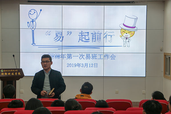 为促进易班工作开展与进行、加强易班教育教学、生活服务、文化娱乐综合性互动社区平台建设,3月12日晚,学院易班工作站于动科楼107室召开了2019年第一次易班工作大会。易班指导教师冯来顺,学院各班级团支书、宣传委员参加会议。易班工作站站长彭梦阳主持会议。