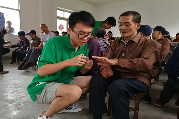 在了解了敬老院的基本情况之后,队员们来到活动室陪老人们聊天,看电视,还帮老人修剪指甲。在食堂准备晚饭时,队员们来到后厨帮忙择菜。老人们虽然可以在舒适的养老院生活,但他们在乎更多的其实是需要陪伴,老人们希望有人可以陪他们聊聊天,特别是看到年轻的队员们身上散发出的活力,自己也会被感染。在简池敬老院的10名工作人员中,有9名是公益性岗位人员,他们把老人当作自己的家人,始终像对待自己的父母一样细心照料着他们。